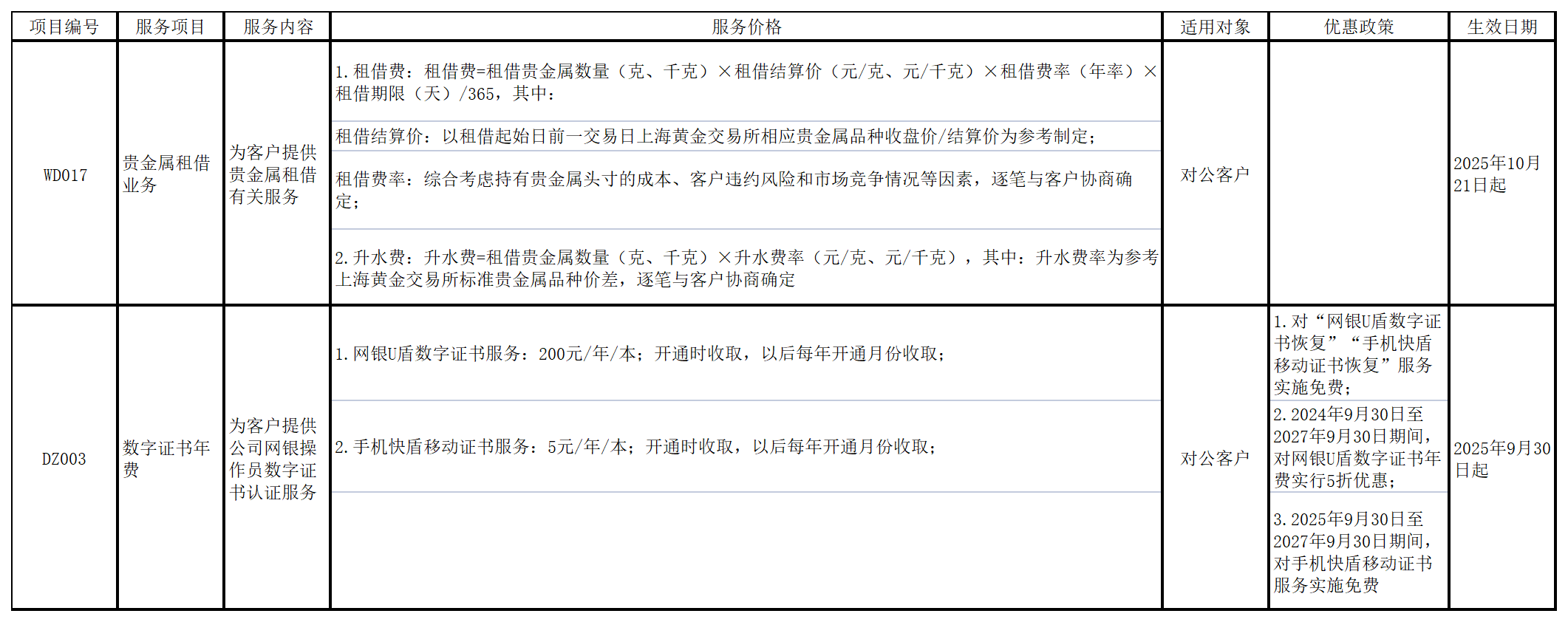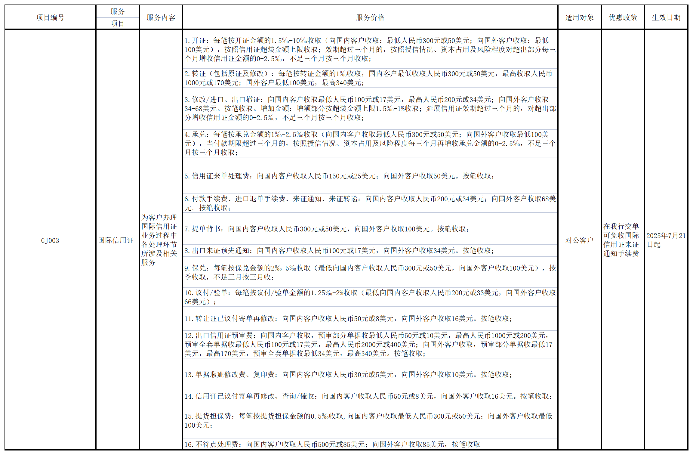根據業務發展需要,我行擬調整部分服務收費項目,根據《商業銀行服務價格管理辦法》(中國銀監會 國家發展改革委令2014年第1號)的規定,現將調整后的服務項目及服務價格予以公示如下: