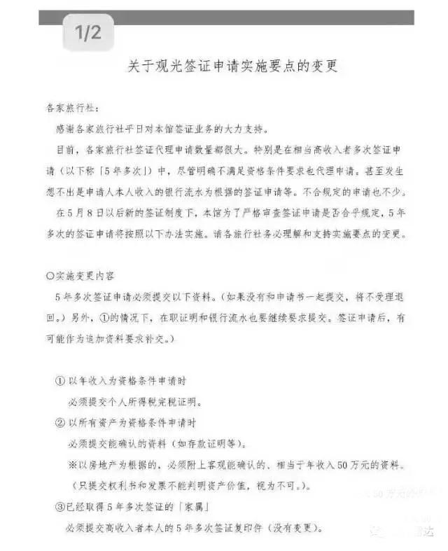 在5月8日以后新的簽證制度下,本館為了嚴(yán)格審查簽證申請(qǐng)是否合乎規(guī)定,5年多次的簽證申請(qǐng)將按照以下辦法實(shí)施。請(qǐng)各旅行社務(wù)必理解和支持實(shí)施要點(diǎn)的變更。