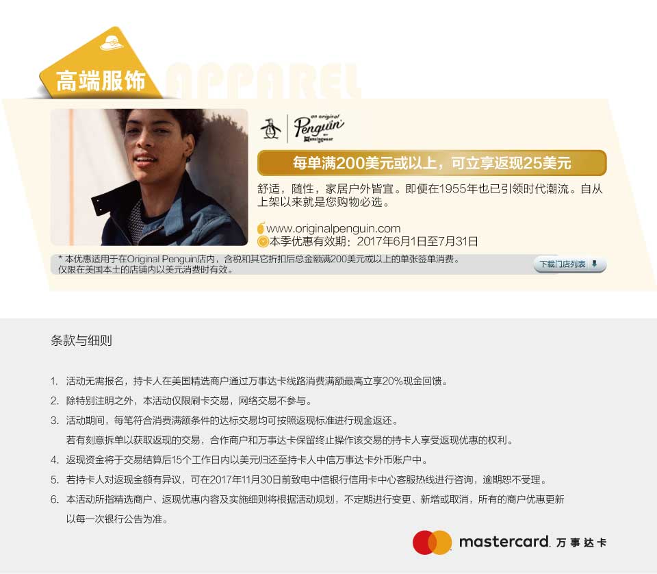 中信萬事達(dá)卡美國享20%返現(xiàn)